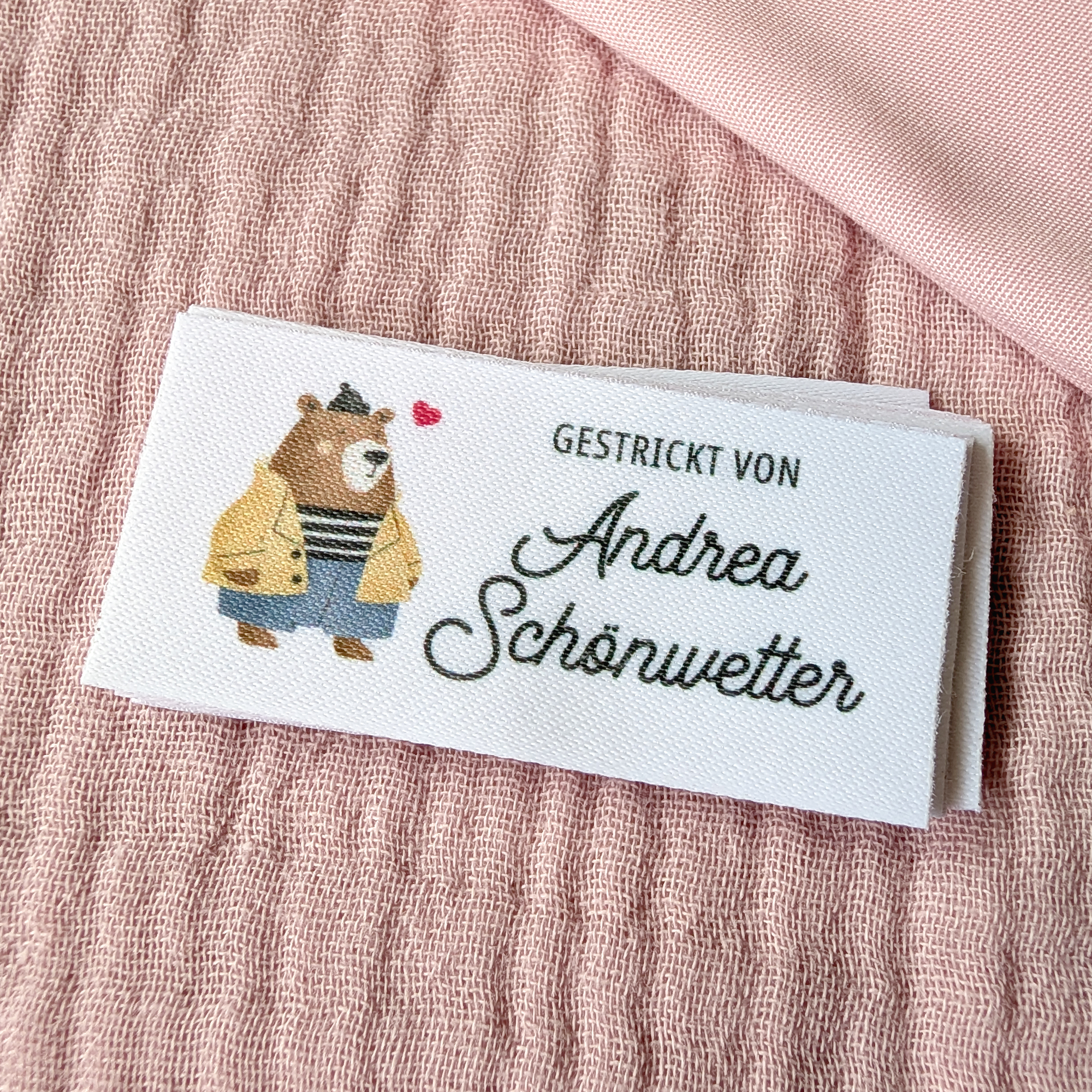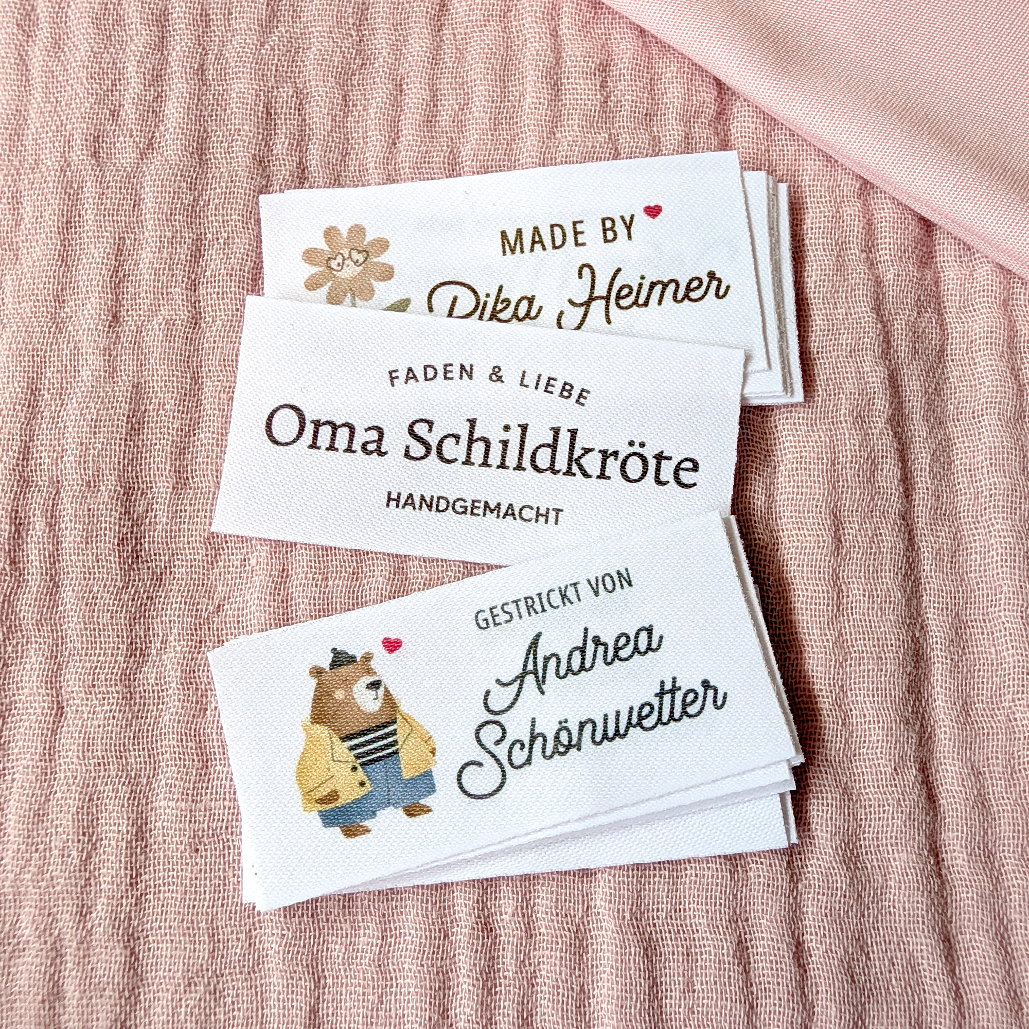 Ein niedliches und absolut hochwertiges Label zum Aufnähen – mit deinem eigenen Text. Süße Motive für kreative Handarbeiten. Wähle dein Wunschmotiv und eine Farbe aus. Dann gibst du deinen Wunschtext ein. Perfekt um deinen selbstgemachten Einzelstücken deinen Namen zu mitzugeben.